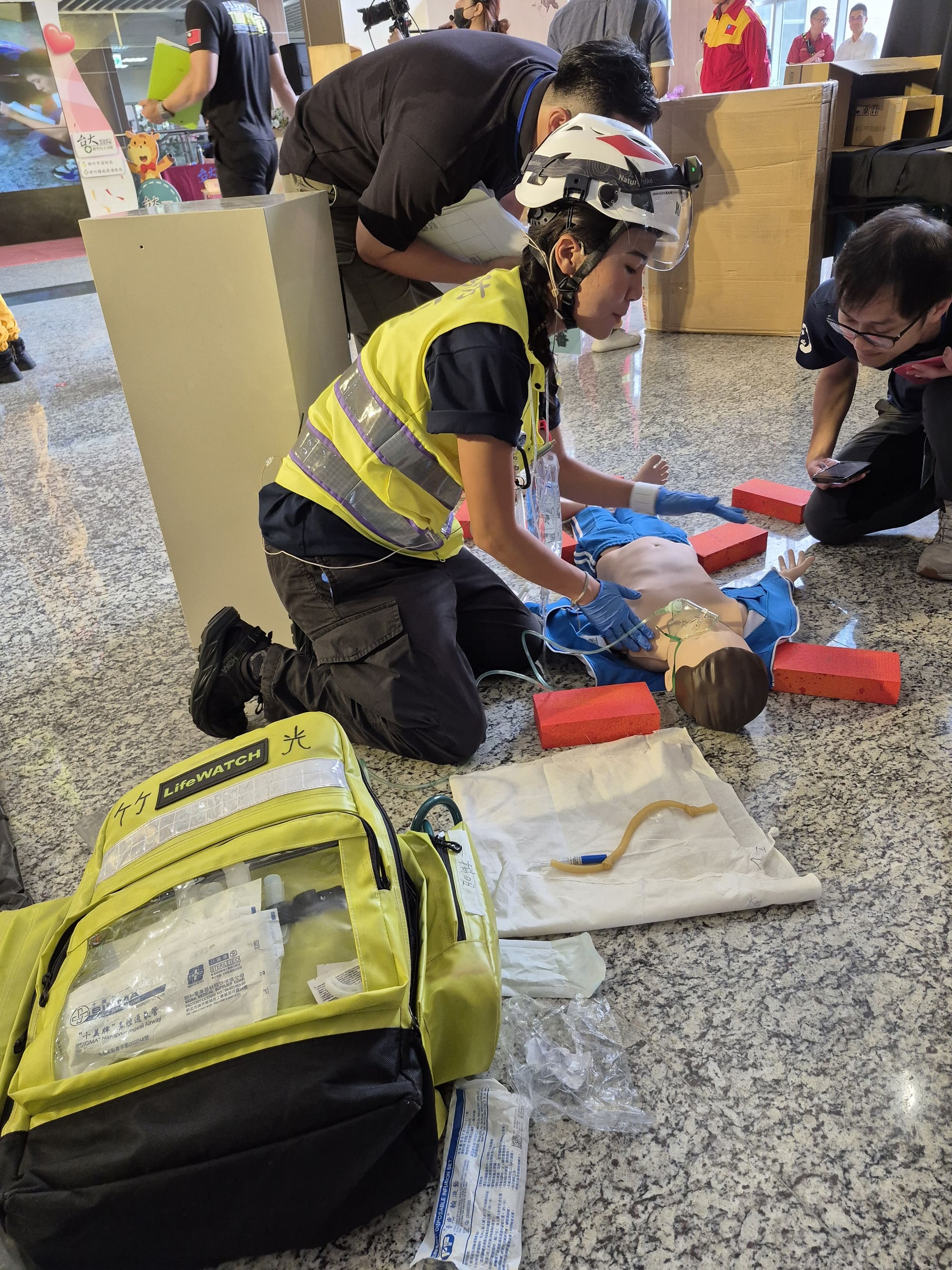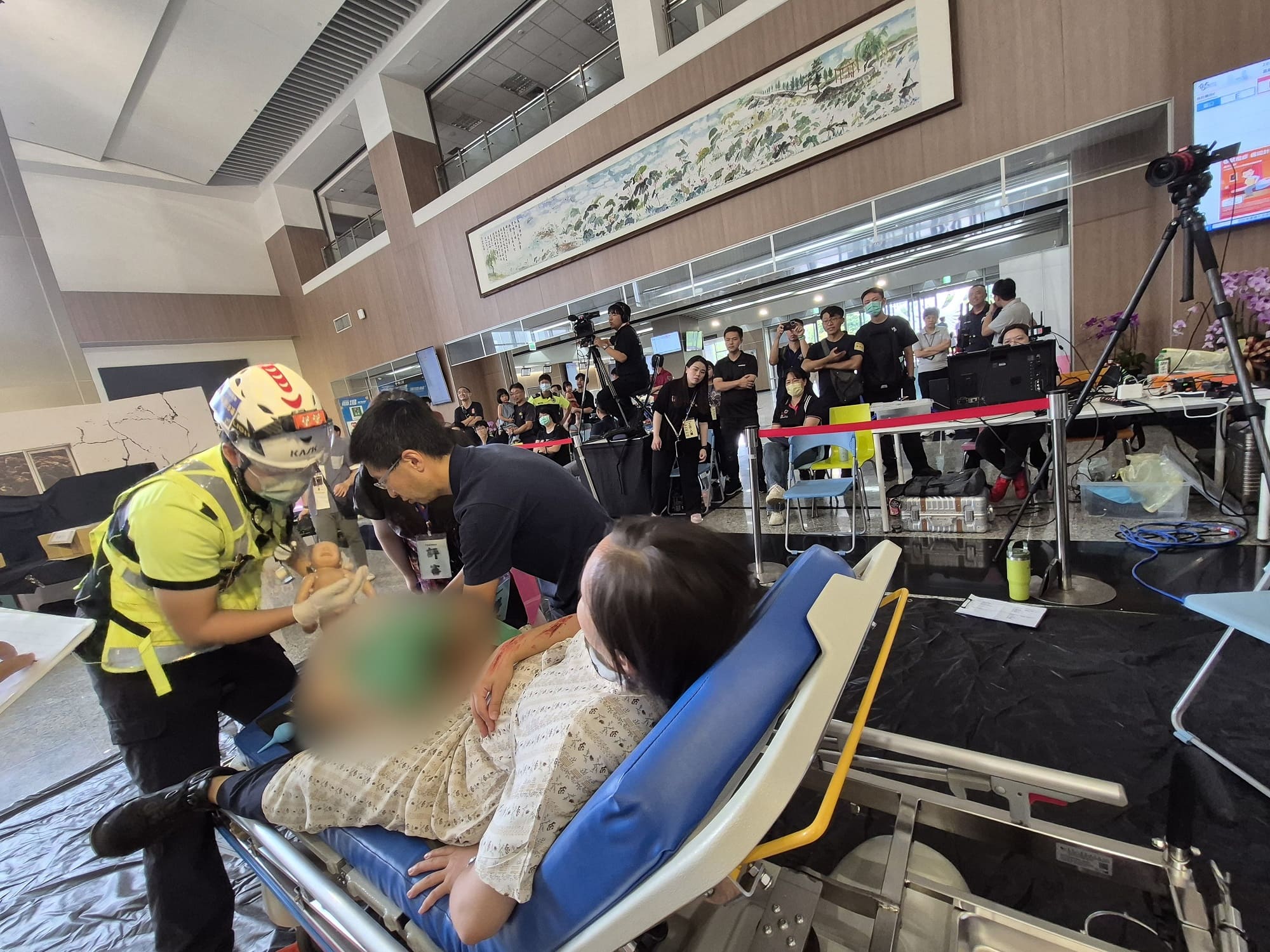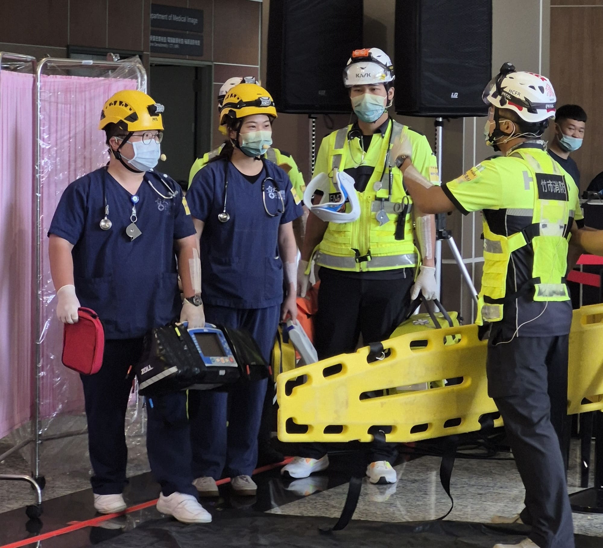 此次競賽以「地震大規模傷患」為情境,模擬真實房屋倒塌與困難搜救環境,確保競賽實戰性與教育意義。參賽隊伍由桃竹苗四縣市的救護技術員,搭配林口長庚紀念醫院、新竹馬偕紀念醫院、中國醫藥大學新竹附設醫院、東元綜合醫院、為恭紀念醫院、仁慈醫院、天主教聖保祿醫院、臺北榮民總醫院新竹分院與新竹臺大分院等九家醫院的醫護人員組成,共12支堅強隊伍競賽。競賽全程緊湊逼真,各團隊需以團隊資源管理(Team Resource Management, TRM)為核心,在高度擬真的複雜情境中,應對孕婦、兒童等特殊族群傷患,於有限時間內完成檢傷評估、外傷處理與氣管插管等關鍵處置,爭分奪秒搶救生命,展現搜救、救護、醫療三方整合的應變能力。