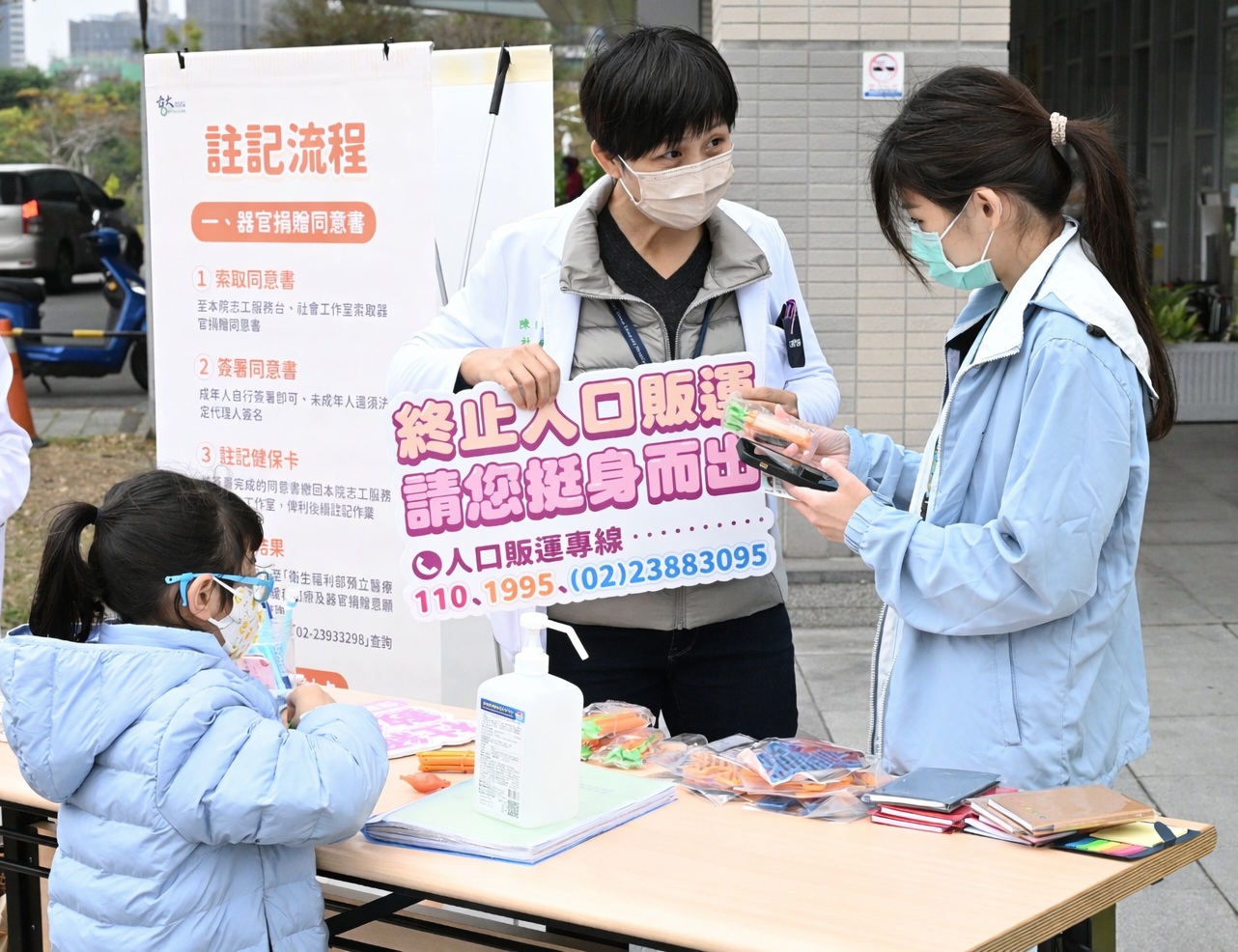 活動現場同時設置公益宣導攤位,由社工室同仁透過互動問答、圖文說明及一對一解說,向民眾推廣家庭暴力防治、兒少保護及器官捐贈理念。社工室林世媛主任表示,不少民眾對於器捐登記存有不少疑問,透過現場說明,有助於民眾建立正確理解,不少原本只是前來看診或陪同家人就醫的民眾,在聽完說明後主動加入行列,甚至邀請親友一同參與,以實際行動將善意持續傳遞。