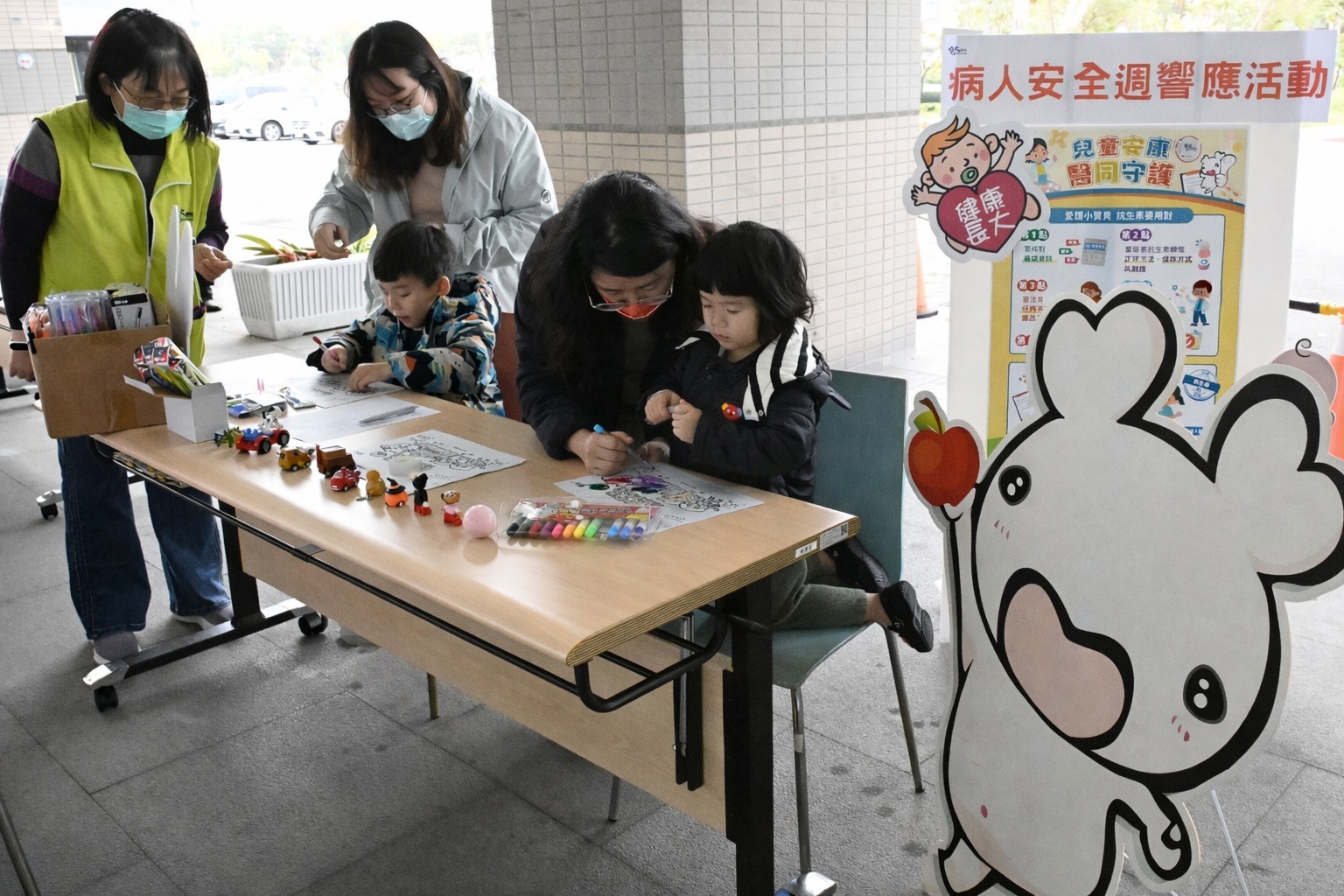 為響應世界衛生組織(WHO)世界病人安全主題「孕產安全;你我共守」、「兒童安康;醫同守護」,活動當日品質管理中心也共襄盛舉,透過繪畫形式,將專業的醫療安全議題轉化為具象的祝福。現場許多親子共同發揮想像力,用絢麗色彩勾勒出對健康與母嬰安全的期待。此活動不僅建立良好的醫病互動橋樑,藉由寓教於樂的方式,提升社會大眾對於孕產婦與新生兒安全議題的重視與認同。